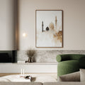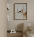 Printed on museum-quality canvas and encased in a refined floating frame, available in Natural, Brown, and Black. Its warm palette and elegant abstraction make it ideal for modern, high-end interiors.