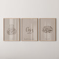 Each piece is framed in high-quality wooden frames, adding sophistication and spiritual depth. The personalized print transforms this set into a meaningful keepsake and a thoughtful gift for new parents.